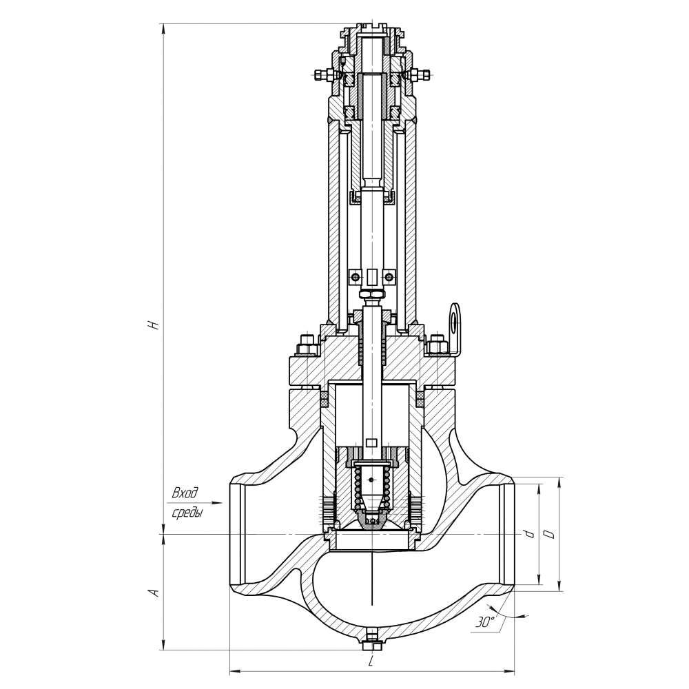 Установочное положение: на горизонтальных участках трубопроводов вертикальным положением штока, в местах удобных для обслуживания.